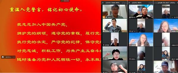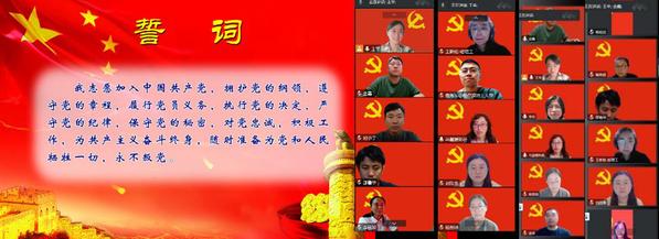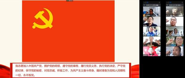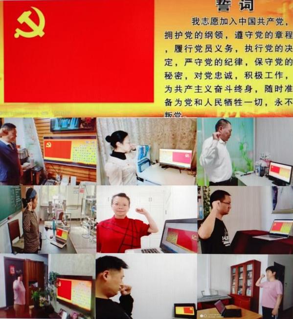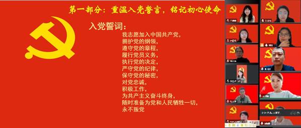 全体党员怀着激昂的心情,在党旗前郑重的举起右手,再次庄严宣誓:“我志愿加入中国共产党,拥护党的纲领,遵守党的章程,履行党员义务,执行党的决定,严守党的纪律,保守党的秘密,对党忠诚,积极工作,为共产主义奋斗终身,随时准备为党和人民牺牲一切,永不叛党。”通过重温入党誓词,再次深刻理解共产党员的义务和责任,铭记共产党员的初心使命和担当。