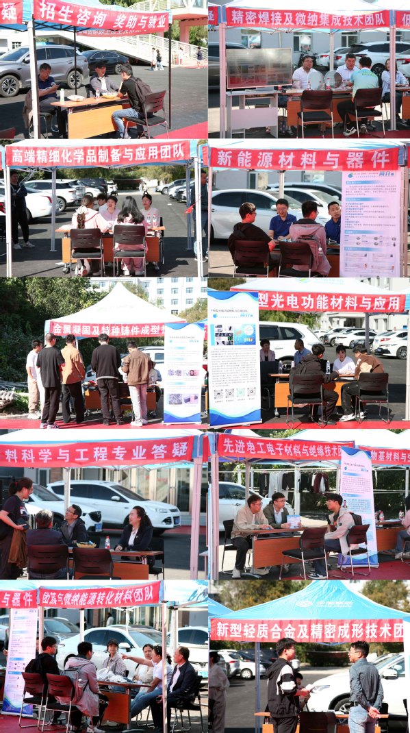 广场的红色地面衬托出热情的氛围,蓝色与白色帐篷整齐排列,横幅上“金属凝固及特种铸件成型技术团队”“先进电工电子材料与绝缘技术团队”“低碳与能源催化研究团队”“精密焊接及微纳集成技术团队”等字样彰显团队科研底蕴。200余名来自齐齐哈尔大学、佳木斯大学、绥化学院、大庆师范学院、黑龙江东方学院等外校学子及本校学子参加了现场咨询会,他们或驻足展板前凝神细读,或围坐桌旁深入交流,聆听低碳能源、新型碳材料、新能源材料与器件、光电功能材料、团簇与微纳能源转化、高端精细化学品制备、生物基材料等前沿方向的介绍,感受到科研与产业交融的脉动。每一顶帐篷背后,都是一个深耕多年的科研团队,他们用成果说话,用热情引路,让冰冷的技术术语有了温度。通过面对面交流,学生们更加明晰了研究方向与自身发展的契合点,现场氛围热烈而有序。