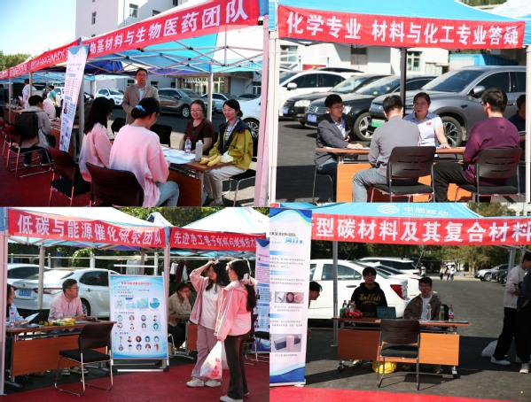 9月26日,材化学院2026年研究生招生现场咨询会在南区化工楼广场前举行,此次咨询会的目的是为广大考生提供材化学院精准、全面的招生信息和科研特色,助力考研学子顺利开启研究生求学之路。学院11个科研团队及学院办公室、研究生辅导员参加咨询会,为考生提供面对面的咨询服务。