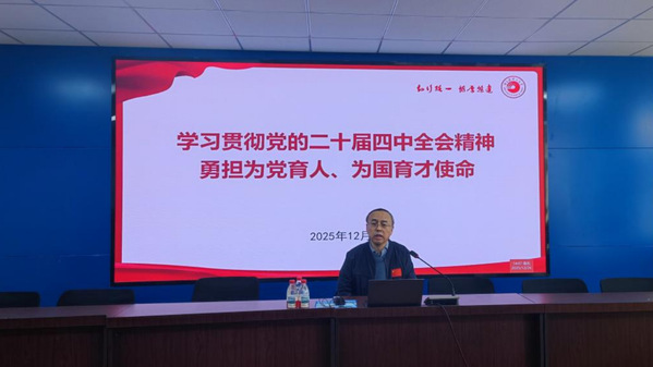 12月26日,学院召开全体教职工大会,副校长臧永军应邀作首场专题宣讲。他以《深入学习贯彻党的二十届四中全会精神,勇担为党育人、为国育才使命》为题,结合国家发展大势和高等教育使命,系统阐释了全会的重大意义、核心要义与实践要求。