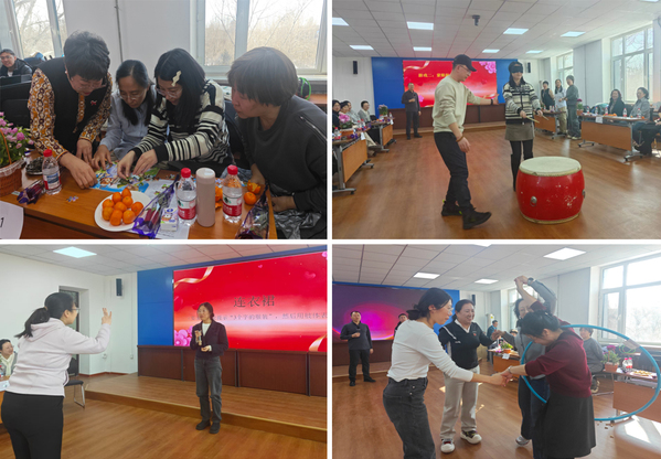 本次活动设置了趣味游戏和互动分享两个版块。趣味活动版块共设置巧手拼拼乐、蒙眼敲鼓、心有灵犀、快乐呼啦圈接力赛等四项游戏,全体女教工代表以抽签形式分为九个阵营,轻松开启趣味互动环节。集体项目中团队配合默契、协同作战,个人项目中踊跃参与、全力以赴,现场紧张而热烈,笑声、掌声此起彼伏,整个现场成了一片欢乐的海洋。